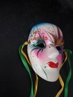 Vintage Mardi Gras Porcelain Ceramic Multi Color Face Mask Wall Hanging Jester