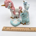 Vintage Ceramic Hand Painted Unicorn Family Figurines Laying Down Pink And Blue