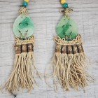 Estate Vintage Chinese Carved Green Jade Coral Beaded Tassel Ornament