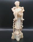 Beautiful Vintage Chinese Carved Soapstone Kwan Yin Statue 9.5" C1960 V/g