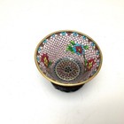 Vintage Plique A Jour Small Decorative Chinese Bowl & Carve Wooden Base 3”