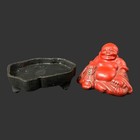 Vintage Chinese Carved Red Cinnabar Lacquer Small Laughing Buddha Figurine
