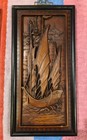 Vintage Chinese Carved Wood Wall Panels Junk Sailboat & Pagoda Pair 15"