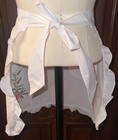 Vintage Half Apron Embroidered Holly Christmas Trim White Organza Handmade