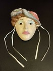 Large Vintage Clay Art ~ Sf Usa ~ 1/92 ~ Ceramic Face Mask 🎭 Flapper Girl ~ 8”