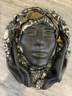Clay Art Sf-usa 1990. Glazed Ceramic Lady With Feathers Mask. Nwt