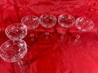 Elegant Set Of 5 Vintage Clear Etched Glass Stemmed Sherbet / Dessert Glasses