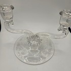 Vintage Clear Etched Glass Dual Candle Holder Floral Design