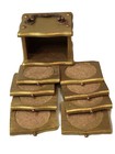 Vintage Wood & Cork 8 Drink Coasters With Storage Box Gold Finish Mid Century Po