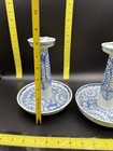 Vtg Porcelain Cobalt Blue & White Candle Holders Floral Candle Stick 7 X 4 In