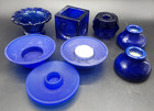 Lot Of Vintage Cobalt Blue Glass Candle Holders Ceramic And Glass Lot Of 8