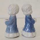 Vintage Pair Blue And White Porcelain Boy And Girl Candle Holders Christmas
