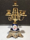 Antique Sevres Style Cobalt Porcelain Candelabra Candle Holder Floral Decor