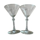 Bar Blue Cocktail Glasses Vintage Set Of Two Etched 5" Tall Beautiful Condition