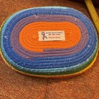 Vintage Southwestern/mexican Jute Coil Weave Basket Vibrant Colors Oval 13"x10"