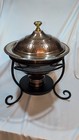 Vintage Copper Cookware Chafing Pan Warming Dish And Stand Minor Tarnish On Lid