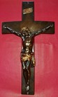 Vintage Wall Crucifix Glossy Cast Metal Casket Cross Jesus