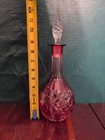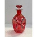 Vintage Cranberry Red Cut To Clear Glass Decanter With Stopper