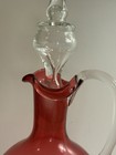 Antique Vintage Victorian Cranberry Glass Decanter Clear Stopper Applied Handle