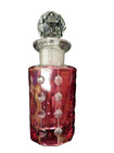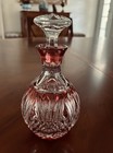 Vintage Cranberry Crystal Cut Glass Decanter Bottle With Topper