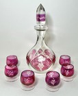 Vtg Decanter 6 Glasses Bohemian Ruby Cranberry Red Gold Overlay W/ Stopper Glass