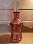 Vintage Bohemian Cranberry Glass Decanter W/ Etched Decoration