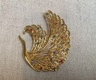 Vintage Gold Tone Swan Brooch Rhinestone Feather Figural Bird Pin Elegant