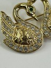 Vintage Swan Bird Love Sparkling Green Eyes Rhinestone Gold Tone Brooch Pin