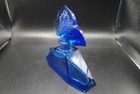 Vintage Art Deco Czech Blue Glass Perfume Bottle W/ Large Etched Stopper
