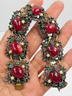 Vtg Art Deco Czech Red Glass Enameled Brass Necklace