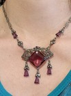 Antique Vintage Art Deco Czech Signed Pendant Garnet Glass Necklace