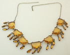 Vintage Art Deco Czech Open Back Yellow Amber Glass Dangle Necklace