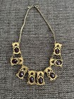 Vtg Czech Czechoslovakia Art Deco Blue Glass Crystal Brass Necklace 15"