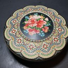 Vintage Daher Made In England Metal Textured Mosaic Floral Round Tin