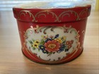 Vintage Daher Floral Tin Canister | Made In England | Red Rococo Flower Design