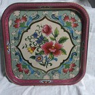 Vintage Daher Tin Tray Pink Floral Serving Platter Made In England Mid Century