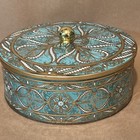 Vintage Daher Tin – England For Long Island Ny – Embossed Turquoise Floral 6 3/4
