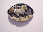 Qk28126 *nos* 1980s **frolicking Unicorn** Wood Inlaid Solid Brass Art Buckle