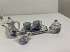 Dollhouse Miniature 10-piece Delft Blue Ceramic Tea Set Vintage