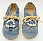 Vtg Denim Canvas Infant Shoes Sneaker Unisex Lace Up Doll Usa 80s