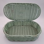 Vintage Mint Green Wicker Sewing Basket Oval Lidded Storage Box Mid Century Mcm