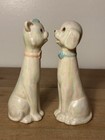 Vintage Lusterware Ceramic Dog & Cat 7” Figures - Mcm
