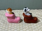 Vintage Dog & Cat Miniature Match Holder Shoe Porcelain Black Shoe Vintage