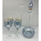 Vtg 5-piece Crystal Blue Floral Etched Decanter & Wine Glass Set Bohemian