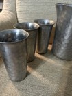Vtg Mcm Hand Forged Everlast Metal Hammered Aluminum Pitcher W/ 6 Cups