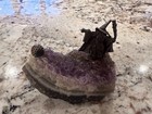 Vintage Pewter Wizard Figure W/ Staff And Orb On Amethyst Crystal Geode