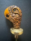 Vintage Figural Bottle Stopper Bird Parakeet Carved Brown Wood Or Resin Ass Eye
