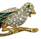 Vintage Figural Bird Brooch Enamel Rhinestones Gold Unsigned Costume Jewelry Pin