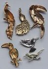 Vintage Figural Bird Brooch Pin Lot Of 6 Rhinestones Gold Tone