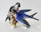 Vtg Swallow Figurine Miniature Blue & Black Birds Perched On Branch Small Figure